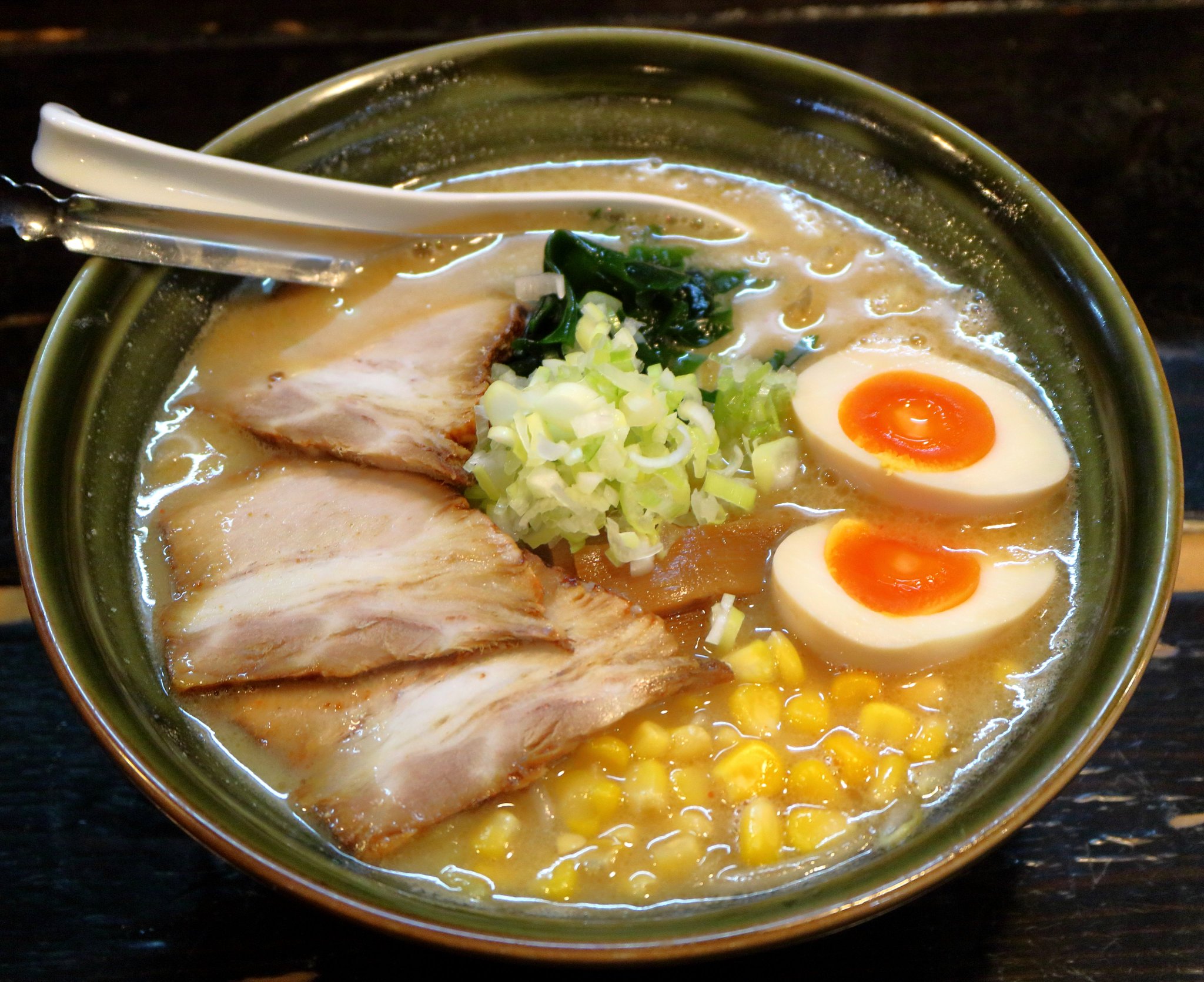 そして特製味噌ラーメンが出てきました。特製なのでチャーシュー沢山、コーン、それに美しい煮玉子が入っていて美しい味噌ラーメンでした。