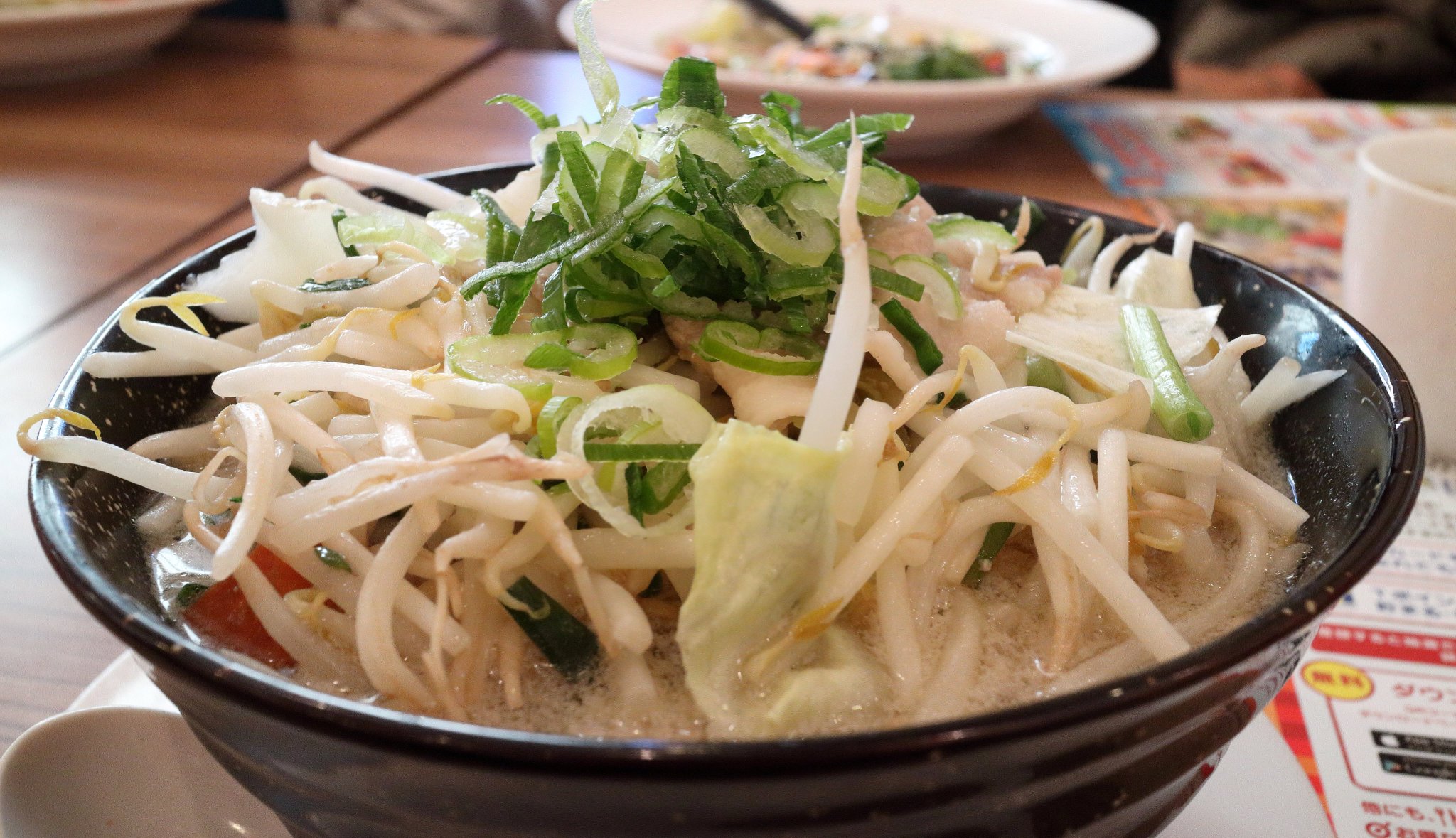 ラーメンは写真ではモヤシが沢山入ったタンメンのように見えますが、ニンジンとかニラとかキャベツとかも入っていました。塩味のスープで麺はやや柔らかめの中太縮れ麺でした。