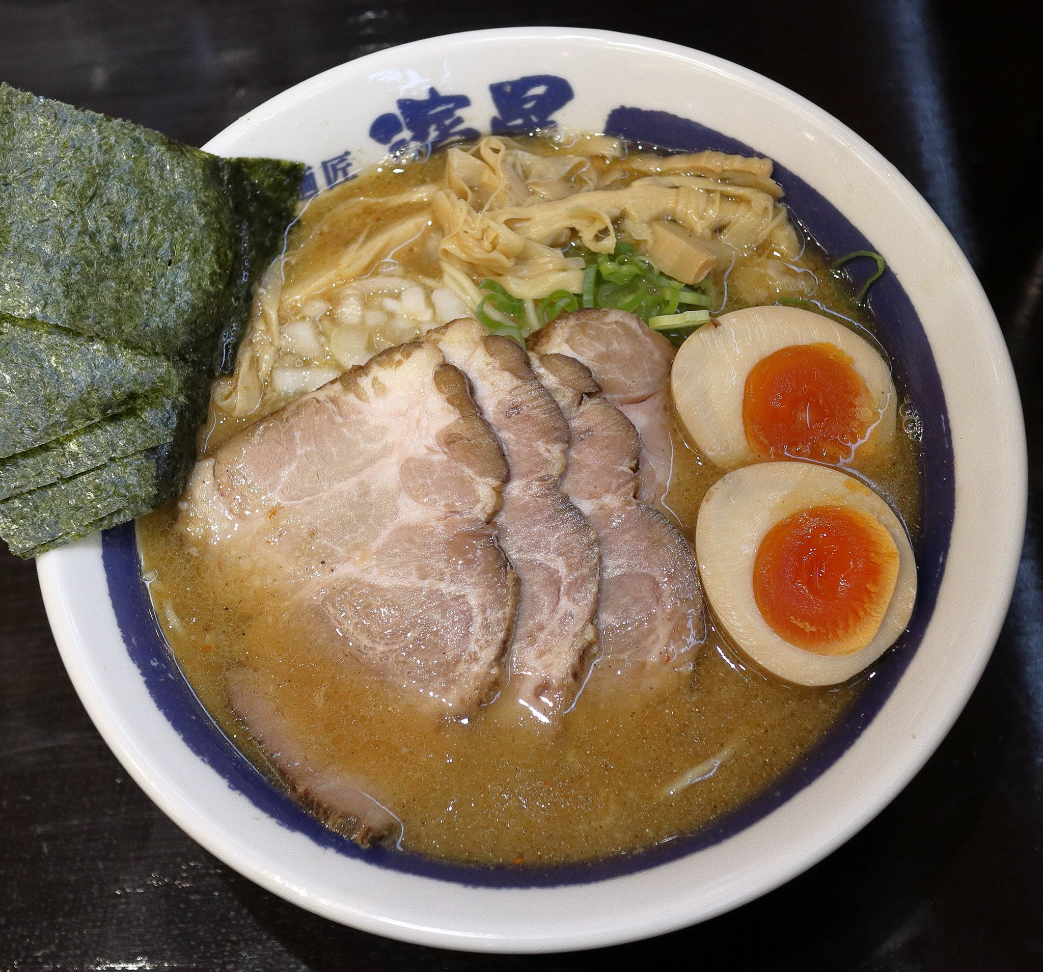 店内は空いていました。カウンター席が無いので2人用のテーブル席に座りました。メニューを確認して特製濃厚煮干そば:1000円を注文しました。後で分かったことですがこの価格は税抜きだったのです。ラーメンは要するに全部乗せラーメンです。