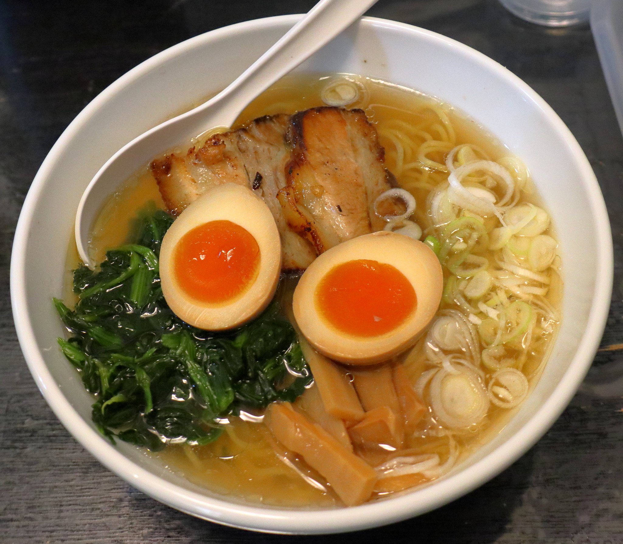 昨晩テレビ東京のアド街ック天国で川崎大師周辺の紹介をしていました。これに影響されて今日は母と川崎大師に参拝に行くことにしました。10時頃には家を出ましたが途中で方針が変わり、まずは泉岳寺に行ってみることにしました。泉岳寺は京急で行きやすいのです。境内の案内で知ったのですがもともと徳川家康が今川義元のために建てた寺であることと、栃木県の大中寺と深い関係があるとのことでした。浅野家の墓をはじめ、四十七士の墓や記念館にも寄りました。大勢の人が来ていました。そして再び京急に乗って京急川崎で降りてラーメンを食べることにしました。どこにしようか悩みましたが久しぶりにラーメンシンフォニーに行ってみることにしました。現地に到着してみて驚いたのですがどのお店も行列ができていて大賑わいでした。なんつッ亭、徳、大山には行ったことがありますが、いちやと海力屋にはまだ行ったことがなかったので今回両方行ってみることにしました。 まず最初に中華そばいちやの行列に並びました。期間限定出店と書かれていました。母が熟成醤油味中華そば味玉入り:780円(写真右)にしたので、私は炙り塩味中華そば玉子入り:780円にしました。場所はもともとめじろが入っていたところで長いカウンター席でしたので回転もよくすぐに順番がまわってきました。見ための第一印象は紹介写真よりかなり貧弱そうな感じでした。しかしスープを飲んでみると塩味がしっかりと味わえる美味しい塩味のスープでした。麺はやや細めの縮れ麺でコシがあって美味しかったです。 母はコッテリしたラーメンが好きなのでイマイチ物足りなかったようです。 管理人の母評価:★★★☆☆ 管理人評価:★★★★☆