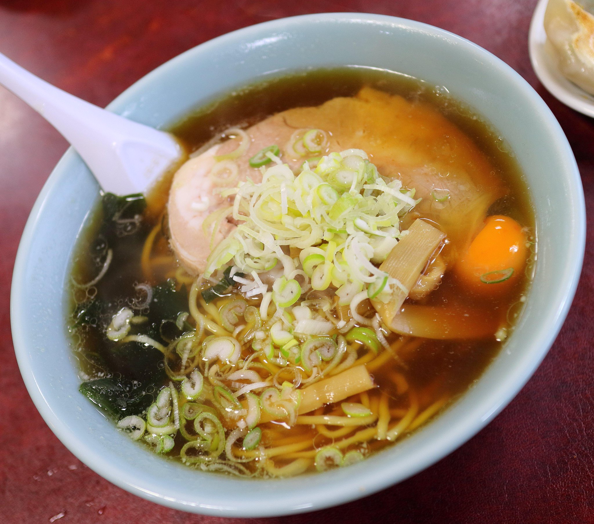 今日は浴衣姿の女性店員が3名いました。そしてワンタンメンが出てきました。 スープを飲んでみるとサッパリした感じのスープでした。先週末の濃厚煮干の後遺症が残っていて物足りなさを感じてしまいます。でも麺も美味しかったし、チャーシューも良かった。ワンタンって本当は口の中でよく感じでジューシーな感じを味わいたいのですが、熱くてすぐに飲み込んでしまいます。今日も最初の1個目は飲み込んでしまいましたが、2個目で半分だけかじればいいことを発見。3個目はワンタンをじっくり味わって食べることができました。 武田の子孫評価:風邪のため評価不能 管理人評価:★★★★☆ |