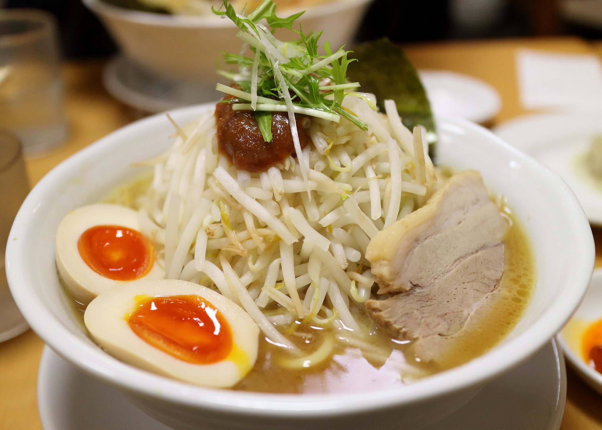 2016年04月02日昼 麺処 ぼたん:栃木県栃木市 今日はゴルフの日でした。天気予報はあまり良くなさそうな感じでした。関東南岸は雨が降る確率が高かったですが、北関東は曇りで持ちこたえそうでした。そういった中私が予約しておいた大平台CCは栃木県栃木市にあるゴルフ場で雨の心配はなさそうでした。しかもこのゴルフ場はゲートからクラブハウスまでの道路に桜が植えられていてこれがちょうど見頃を迎えていました。メンバーはリンダちゃん、武田の子孫、スブリンマキロイ、私の4名。 午後スタートの18ホールスループレーだったので途中佐野SAに寄って食料を購入してからゴルフ場に向かいました。小さいですが打ちっぱなし場もあって、更にアプローチ練習もできました。定刻通りスタートして私はやっとドライバー、アイアンが打てる自信がついてきて46-46=92と自己ベスト更新することができました。そしてラーメン屋に向かいました。事前調査によると栃木市内で人気ナンバー1の麺処ぼたんです。カーナビでセットして到着したところはお店の第2駐車場で下。お店はすぐ近くにありました。店内はカウンター席と座敷があって空いていて我々は座敷に陣取りました。スブリンマキロイ以外はぼたんらーめん:890円(写真右)、おしやま君は特ぼたんらーめん:1100円(写真左)をそれぞれ注文しました。これ以外にも餃子、半ライスなども注文。リンダちゃんはビール、日本酒も注文していました。 ラーメンは写真のようにモヤシが大量に入っていてボリューム満点。麺は太麺でコシがありましたが、普通に美味しい感じでした。わざわざ食べに来るような感じではないかなと思いました。 帰路、東北道はまったく渋滞がなく帰ってくることができました。 リンダちゃん評価:★★★☆☆ 武田の子孫評価:★★★☆☆ スブリンマキロイ評価:★★★☆☆ 管理人評価:★★★☆☆ |