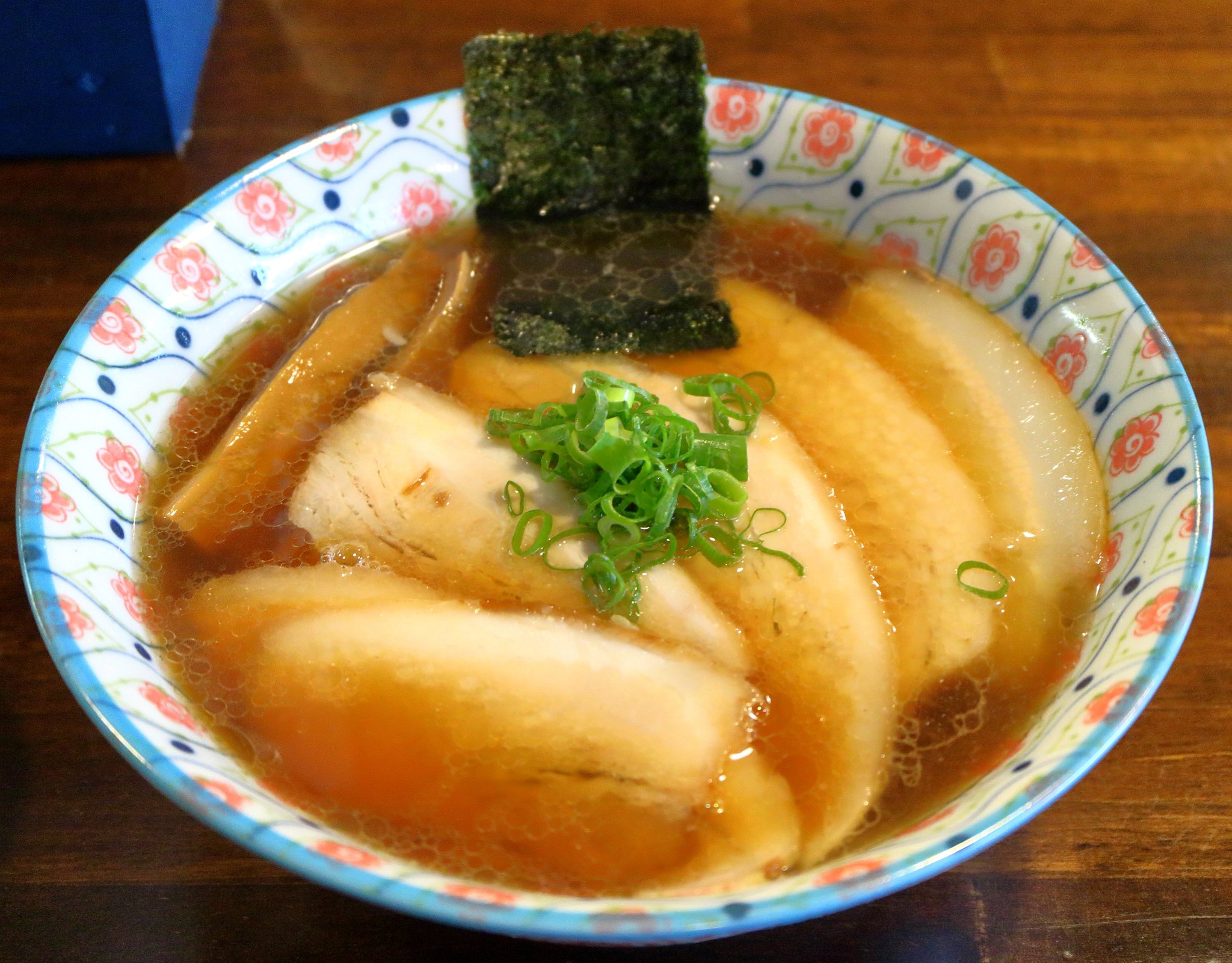 スープを飲んでみると確かに魚介豚骨ではなくて魚介醤油であることが分かりました。分厚いチャーシューが印象的でした。麺は中太ストレート麺。そして岩海苔が沢山入っていてこれも珍しい感じでした。 次回は味噌ラーメンを食べてみたいです。 管理人評価:★★★★☆