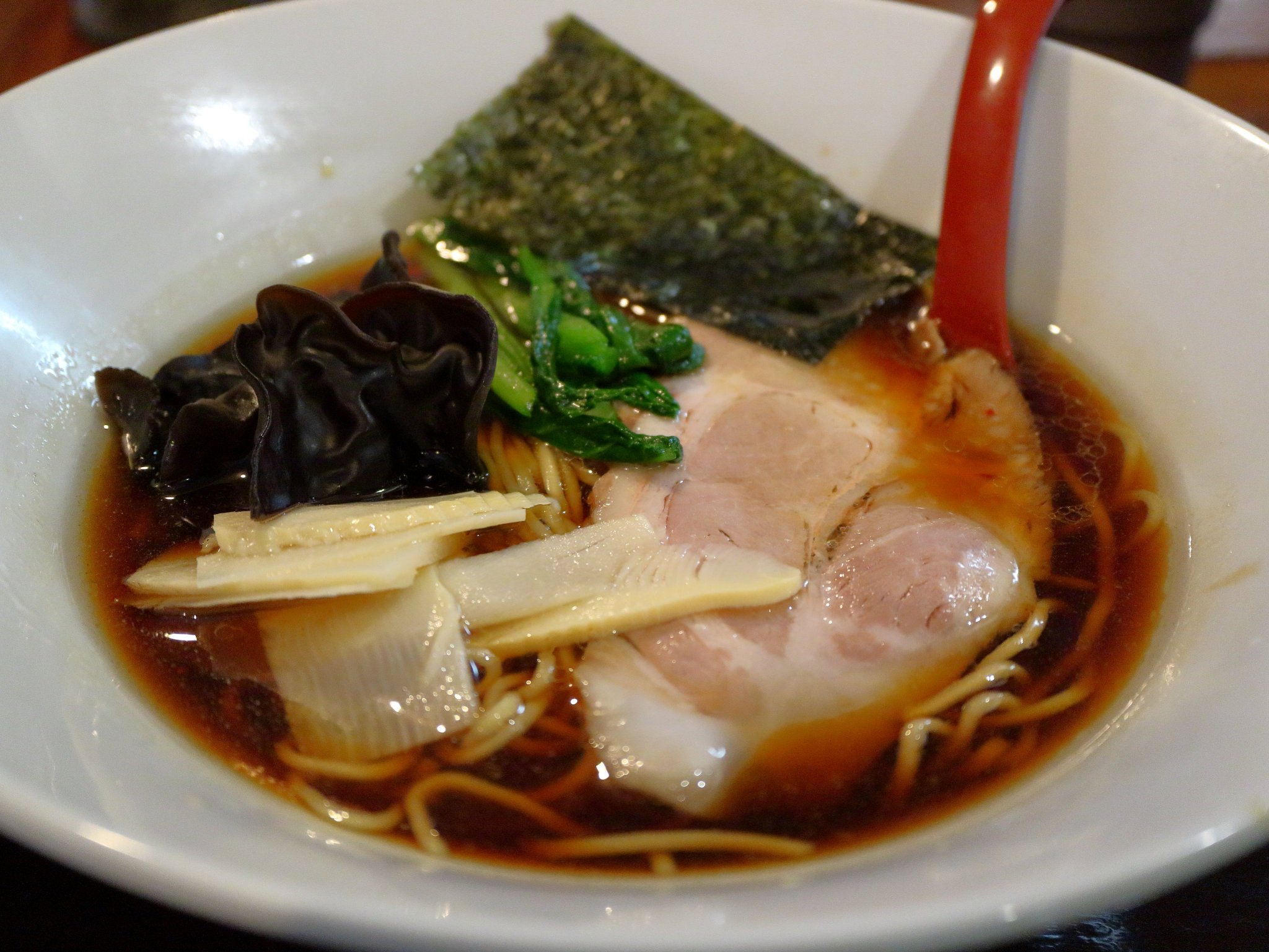 そして豪華なラーメンが出てきました。特製なので具沢山でした。煮玉子は半熟具合が素晴らしかったし、チャーシューは肉を柔らかくするために真空低温調理法という洋食の技法を使っているらしく確かにちょっと生かなと感じるくらいでした。 そして麺はやや太めの中太ストレートでコシがありました。ボリューム満点で満腹になりました。 スープは最初は煮干しの香りを感じましたが徐々に慣れてくるとまるで日本そばを食べているかのような感じになり、慌ててレンゲでスープを飲むとやっぱりラーメンだった!と感じました。 管理人評価:★★★★☆ |