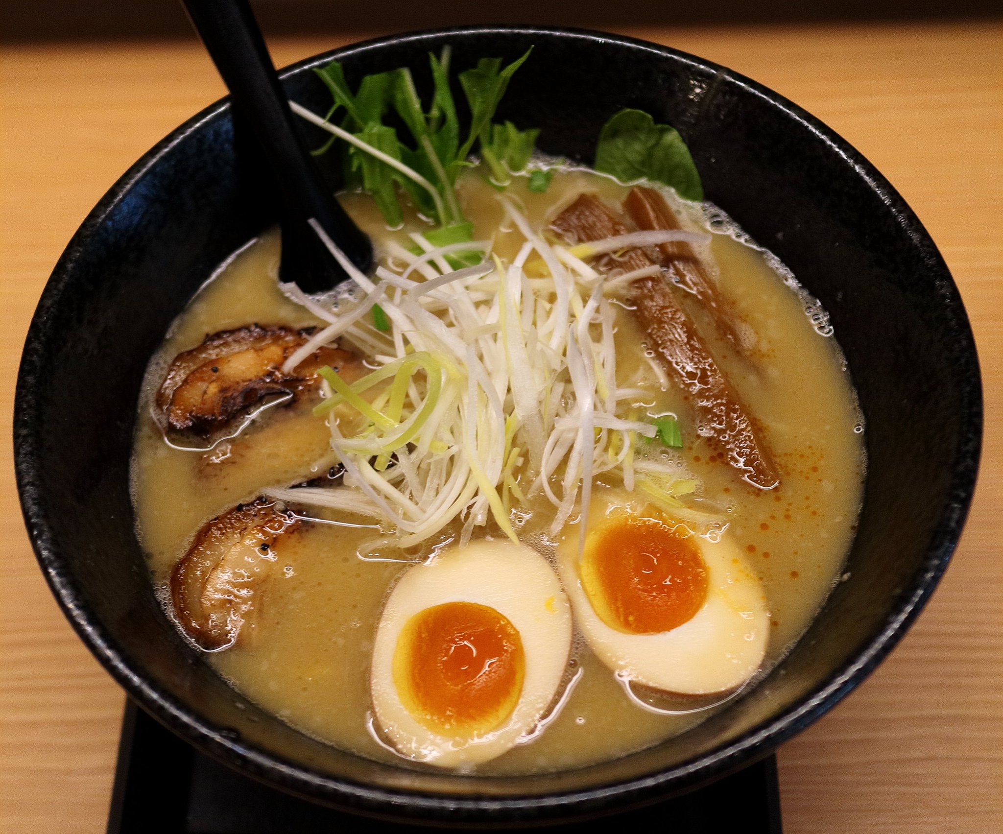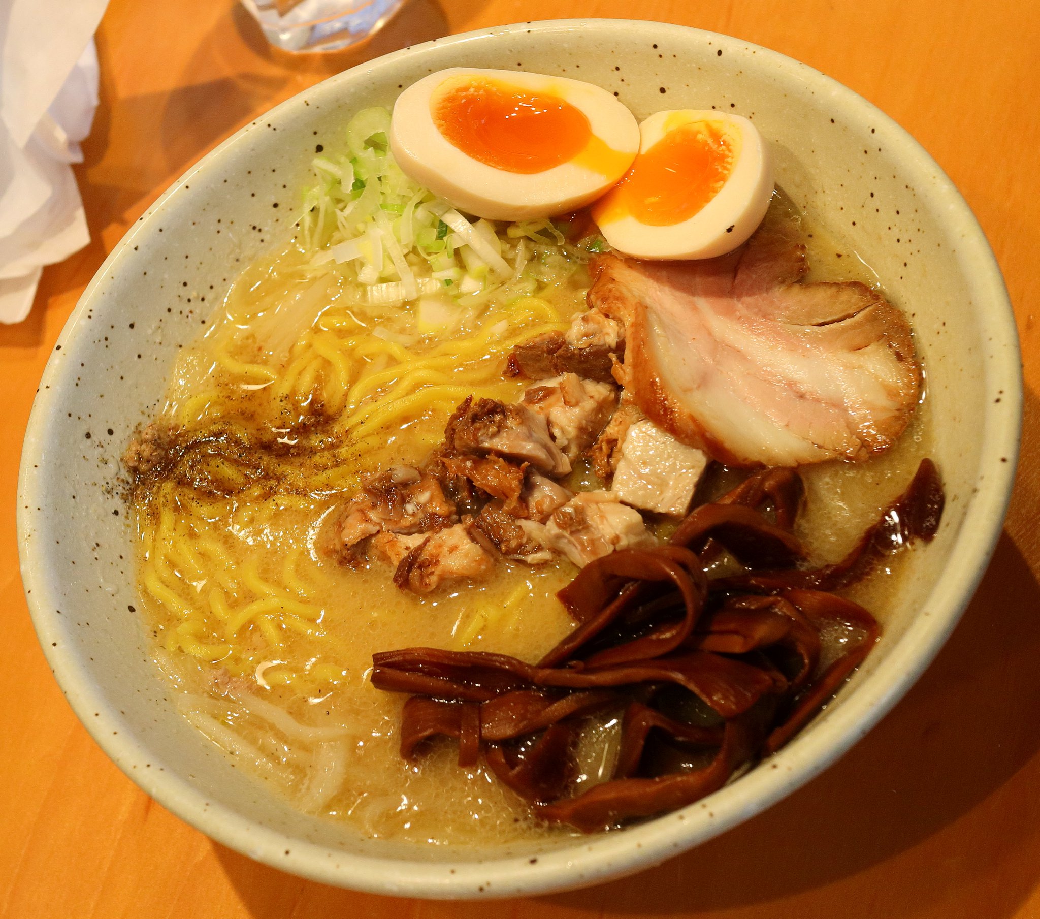 2017年03月23日昼 二代目つじ田 味噌の章:東京都千代田区神田小川町 10時頃だったでしょうか。突然昼の部長である夜桜おせんが来て「今日はラーメン宣言」をしたのでした。もちろん何も起こらなければ決行!に決めました。お店は二代目つじ田味噌の章でした。 紙エプロンがあったのでそれを装着してラーメンを待ちました。そして順番に出てきました。バリ味噌は数種類の味噌をブレンドしたものだそうでまろやかでした。麺は手打ち麺で平打ち縮れ麺でした。野菜が沢山入っていてボリューム満点でした。シナチクがどす黒くて異様でした。そしてチャーシューが柔らかくて美味しかったです。チーバ君の辛味噌は想像以上に辛かったそうです。みやもんは味噌ラーメンはもっと味噌の味を想像していたそうですがクリーミーで良かったとのことでした。レイクちゃんは今まで食べてきたラーメンの中で一番おいしくて幸せになれたとのことでした。 夜桜おせん評価:★★★★★ レイクちゃん評価:★★★★★★(6.0) みやもん評価:★★★★☆(4.5) チーバ君評価:★★★★☆(4.5) 管理人評価:★★★★☆ |