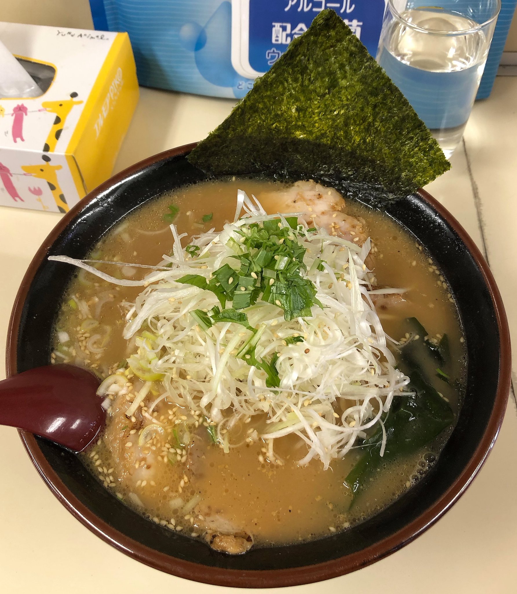 ラーメン:650円、のり:100円、ライス:100円の食券を買って店員に渡しました。好みは麺かためです。 ラーメンはすぐに出てきました。スープを飲んでみると熱すぎなくてやや薄めの豚骨醤油味。毎日食べられそうな感じです。麺はツルツルした感じです。かためも程好い感じです。海苔で麺を巻いて食べます。ほうれん草はシャキシャキしています。チャーシューも美味しい。更に海苔でライスを巻いて食べます。 食後は急いで近所にあるマウンテンバイクのショップに行ってメンテナンスを実施してもらいました。特に異常はなくて早めに終了。 先日の椹島の時はお尻が痛くなったのですが、お尻対策のためのサドルがあったので今度ゆっくり見に来てみます。 管理人評価:★★★★☆ |