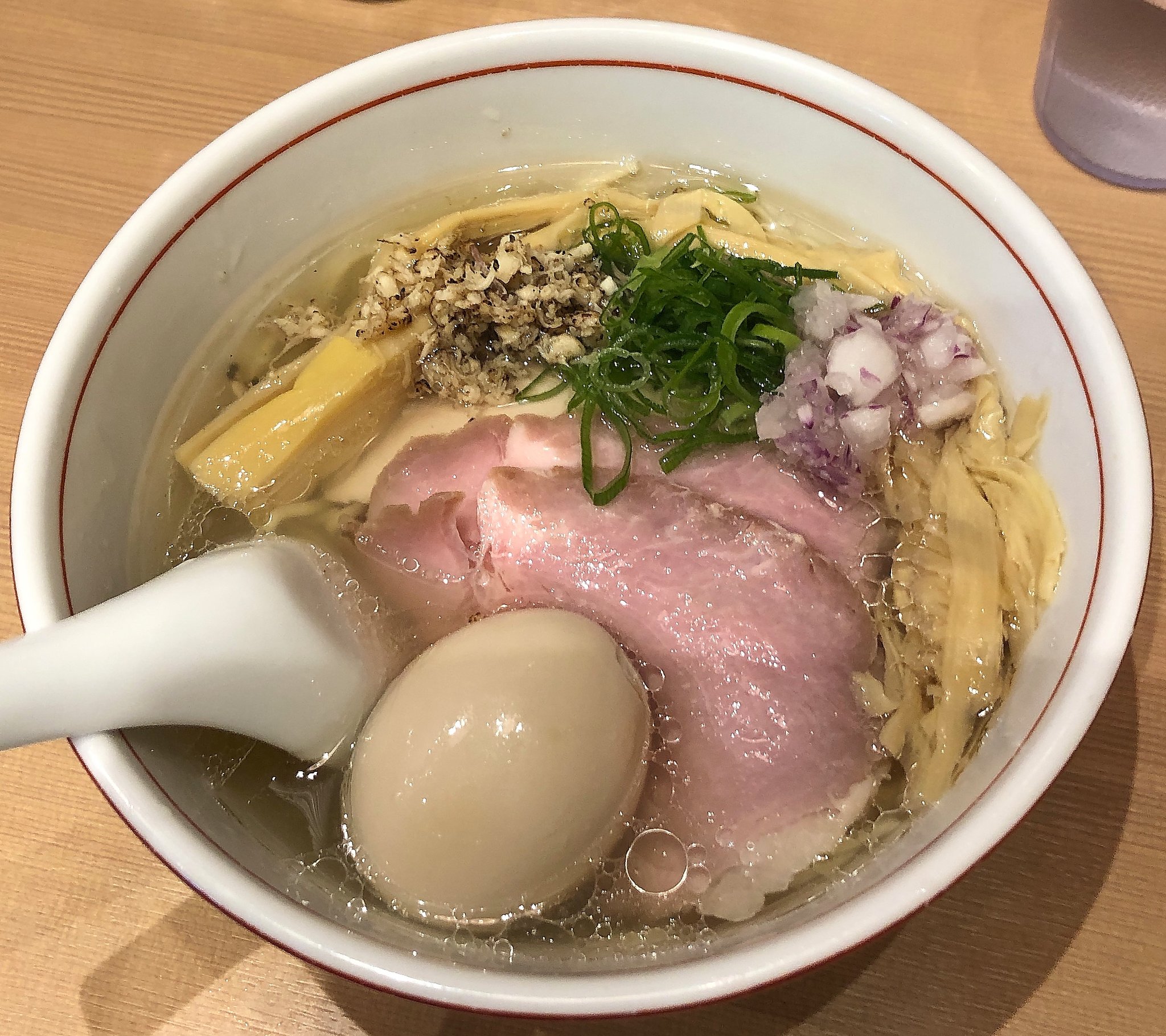 行列もできていなくてスムーズに入店。外にある券売機で特製鯛塩そば:1000円の食券を買ってカウンター席に座りました。 管理人評価:★★★★★ |