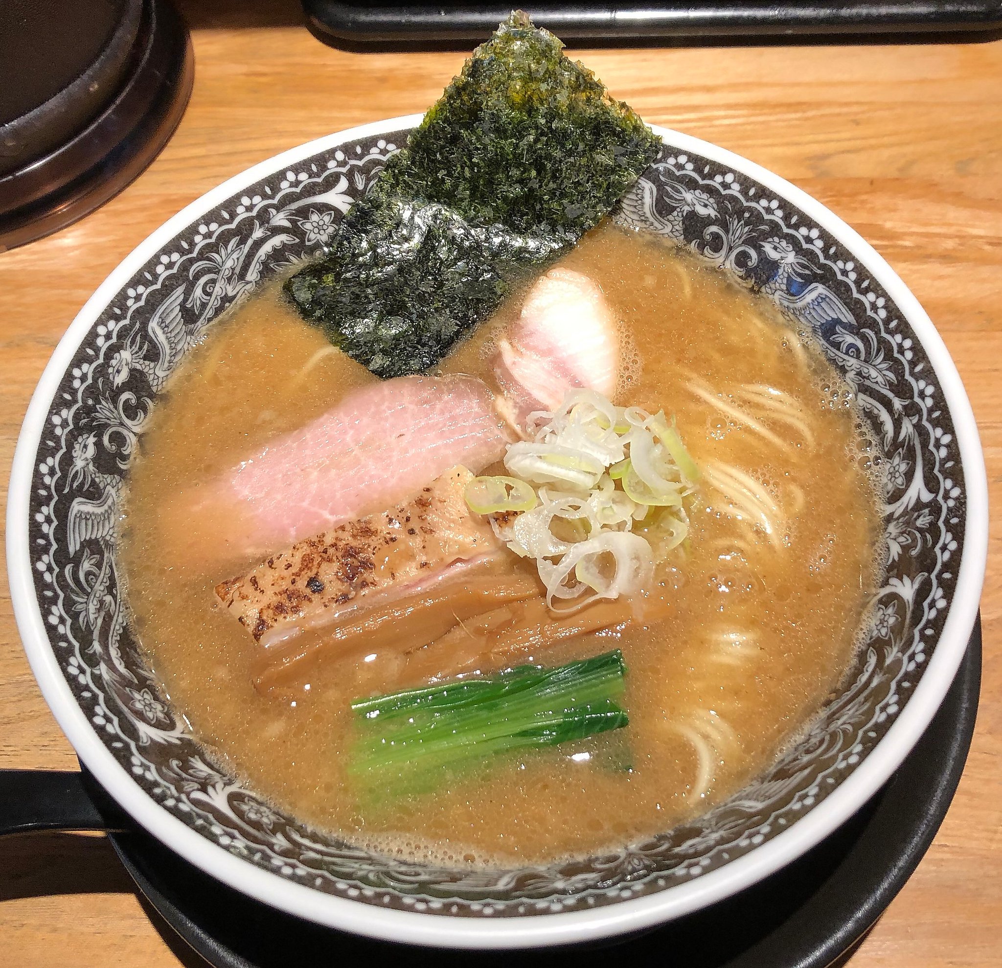 メニューを見て店長オススメの醤油麺コクにごり:750円とライス小:100円を注文しました。隣の先客はつけ麺だったようで私のラーメンが先に出てきました。