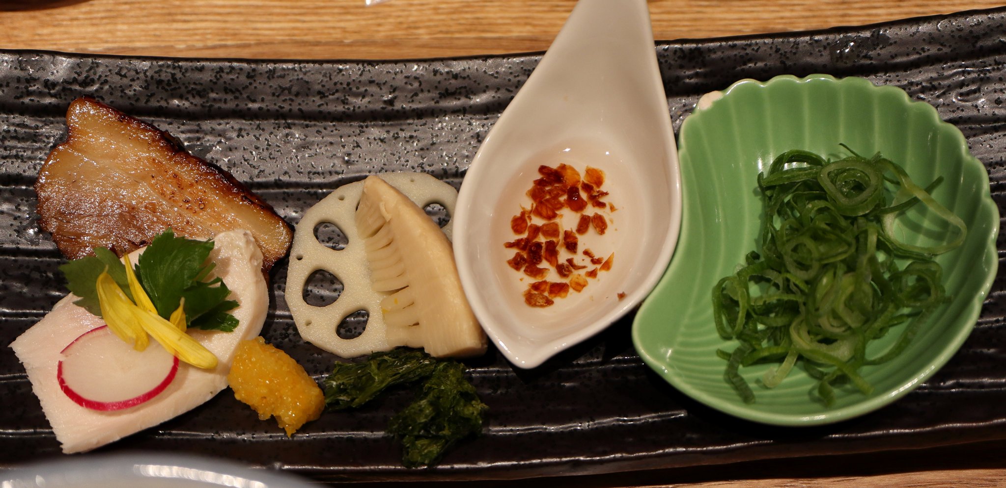 悩んだ挙句、私は大阪店限定のOSAKAだしSOBA:880円、長次郎さんは鶏白湯SOBA:980円を注文しました。私はおススメのトッピングを聞いてみましたがそもそもOSAKAだしSOBAは色々なトッピングが付いているとのことだったのでやめました。