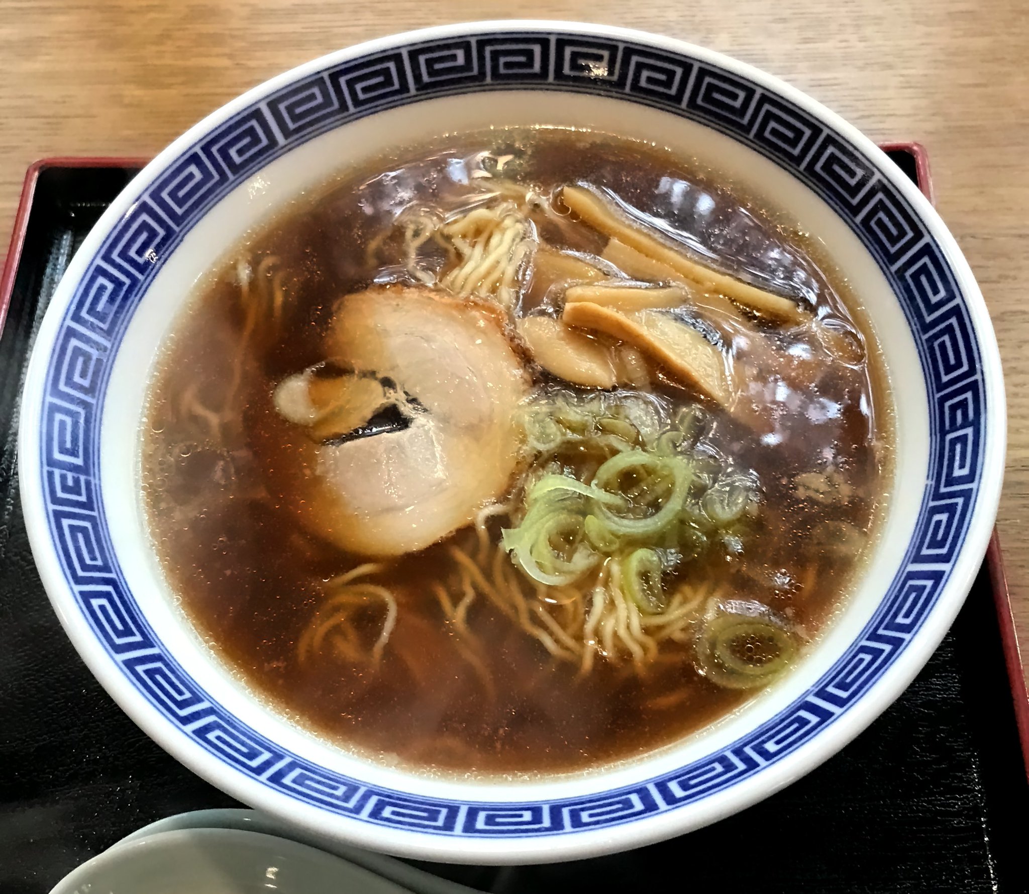 しばらくしてラーメンが出てきました。甘さを感じる醤油スープは美味しかったです。麺は中太縮れ麺でこれも良かったです。