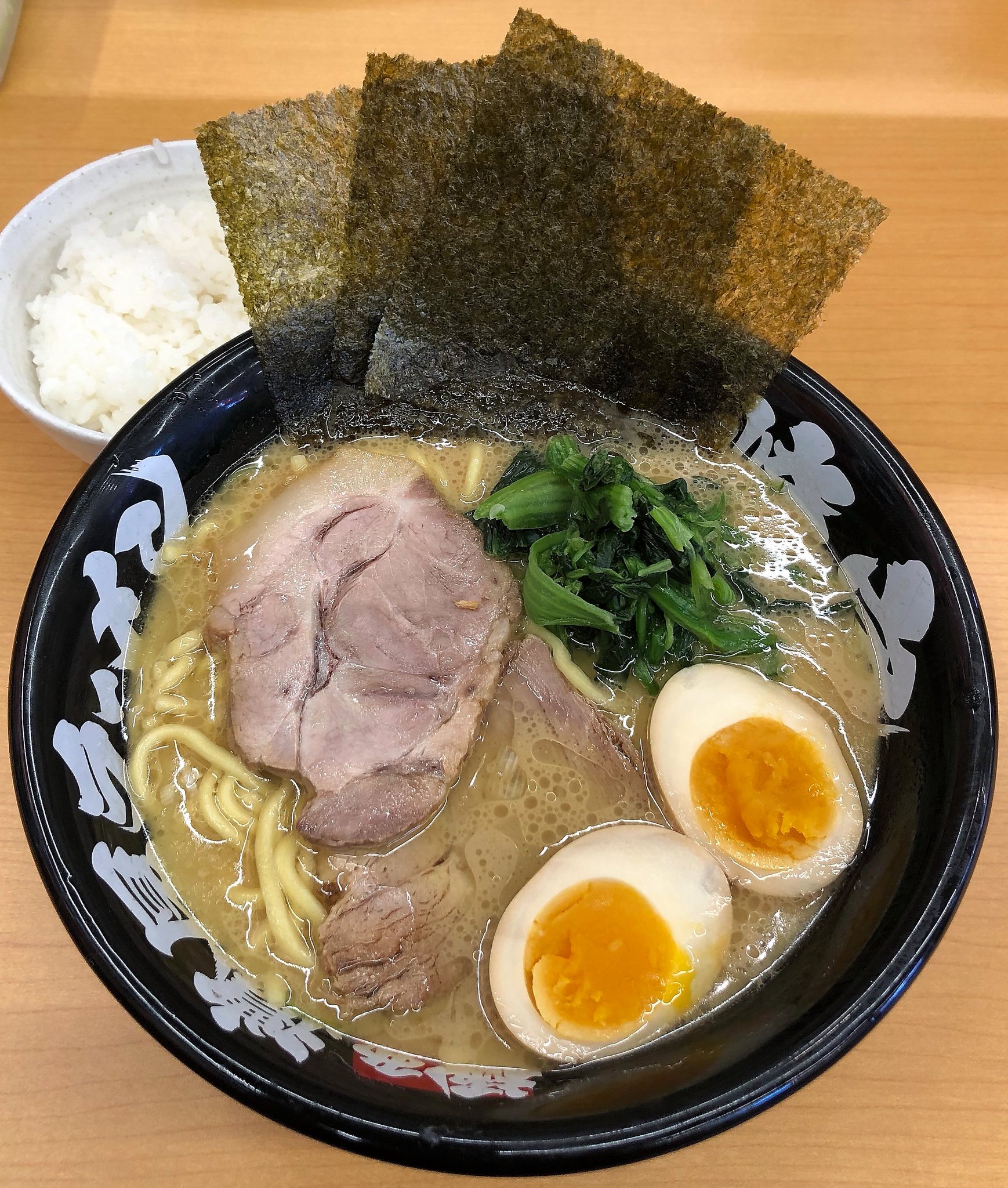 昨日と同じ場所に車を止めることができて券売機で濃厚味玉ラーメン:500円の食券を買って入店。カウンター席に案内され、食券を渡して好みは味かため!とか言ってしまい店員ンを困惑させてしまいました。それから無料の半ライスも注文。