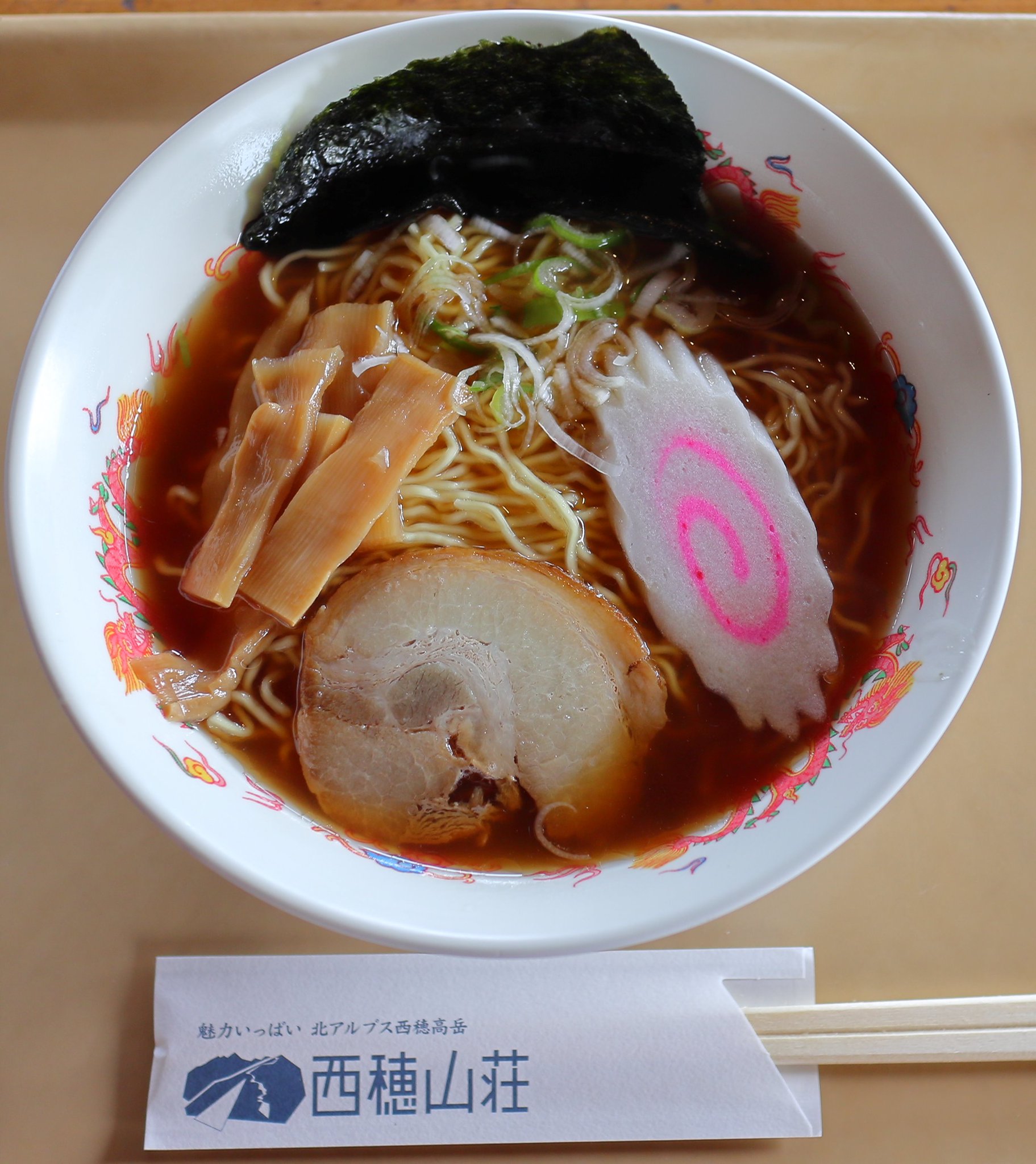 山荘の中は空いていて私は西穂ラーメンを注文しました。味はどうしますか?と聞かれてから初めて複数種類あることを知り、味噌か醤油か悩みましたが西穂ラーメンの醤油味:900円を注文して名前も伝えました。