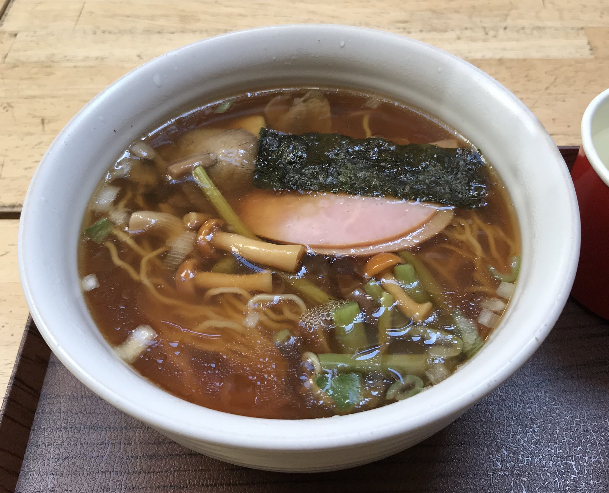 そして再びやまのこ村に到着しました。ここでは食事が可能とのことでメニューを確認すると山菜ラーメン:750円というものがあったのでこれを注文。
