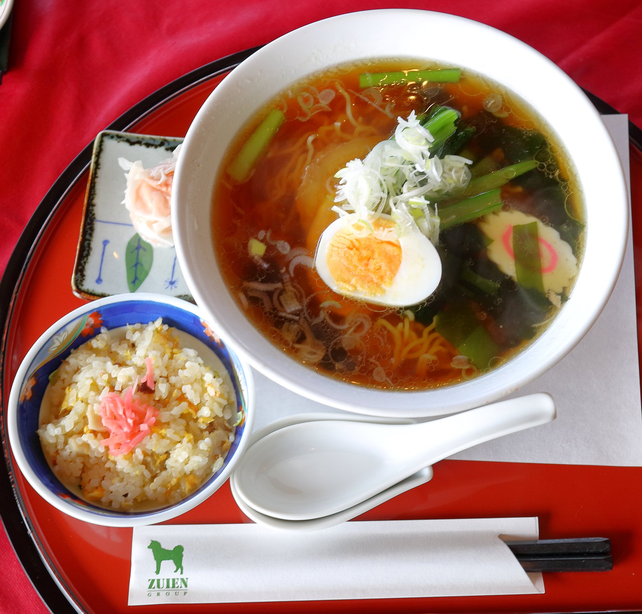 出てきたのはラーメンとチャーハンとシュウマイ。醤油ラーメンは茹で卵が入っていました。極普通の醤油ラーメンなのですが最近こういうのが新鮮で好きです。