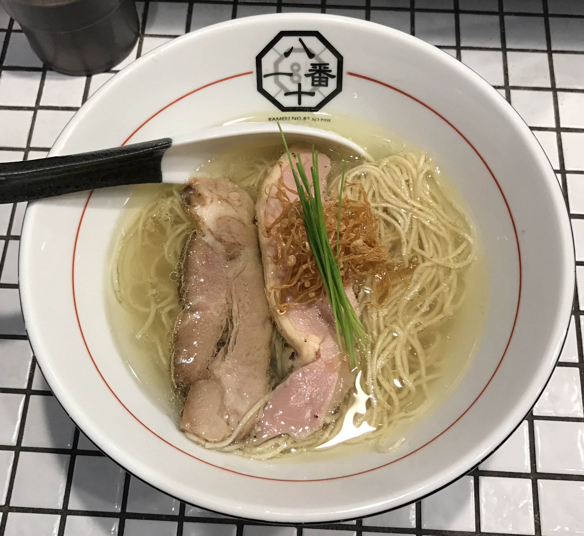 そしてラーメンです。スープを飲んでみると美味しい塩味のスープです。美味しいのでなかなか麺を食べる動作が始まりませんでした。香ばしい香りもしてなんとも言えない雰囲気でした。そして細麺も素晴らしかった。スープが良く絡みました。更に2種類のチャーシューも素晴らしい。私はスープはほとんど飲まない人なのですが今日ばかりはほとんど全部飲んでしまったのでした。