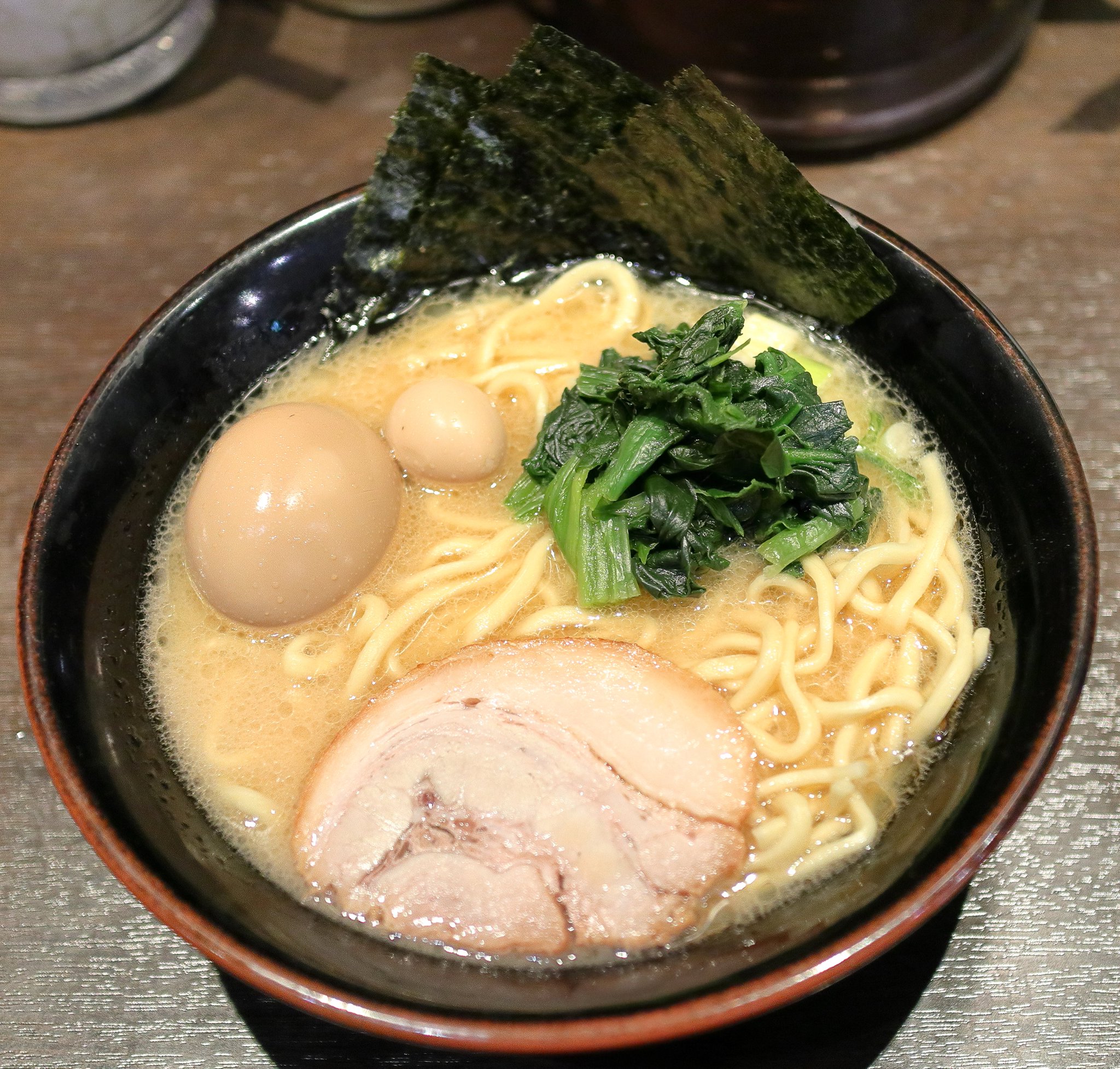 このお店もあまり繁盛していませんでした。先にライスが出てきてからラーメンが出てきました。大きな海苔3枚をスープの中に沈み込ませてからスープを飲みました。するとかなり脂多めのスープでした。脂のせいで豚骨醤油の味が薄れて感じました。麺はかためで注文した通りかためでしたがやや芯が残るような感じでした。麺を食べ終えた後は海苔でライスを巻いて食べたのですがブラックペッパーが普通のコショウだったのが残念でした。また海苔も薄かったので充分にライスを巻くことができず、途中で切れてしまったのでした。もっと良い海苔を使ってもらいたいですね。