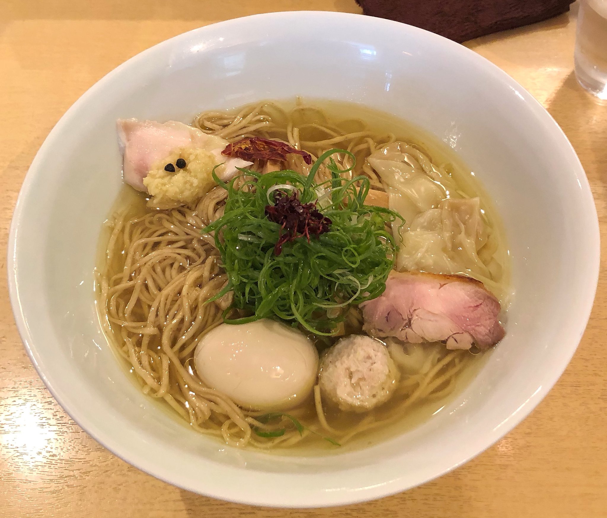 その他にチャーシュー、煮玉子、つくね?、ワンタン、青ネギという構成でした。麺は細麺で注文しましたが日本蕎麦のような感じでした。