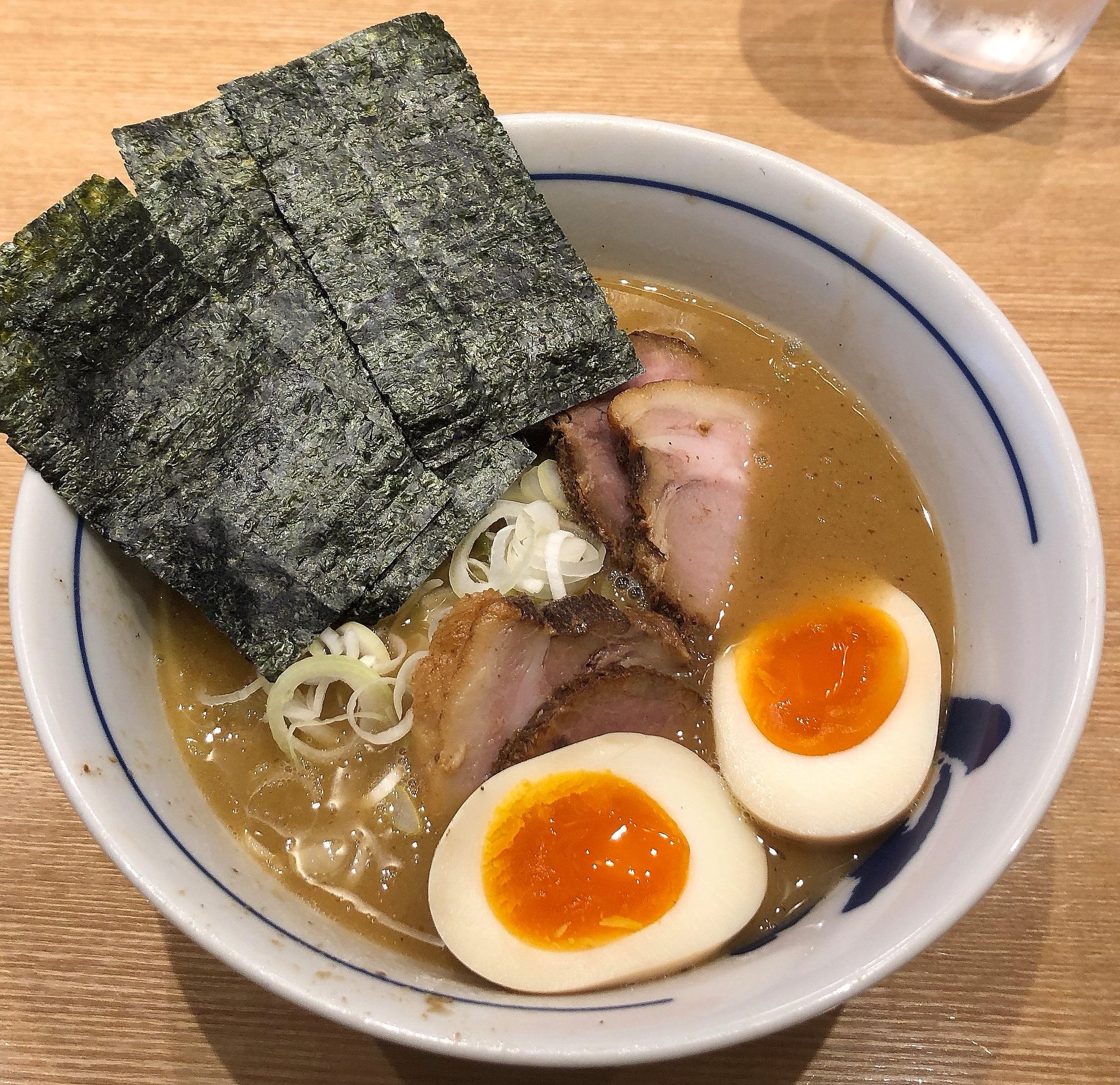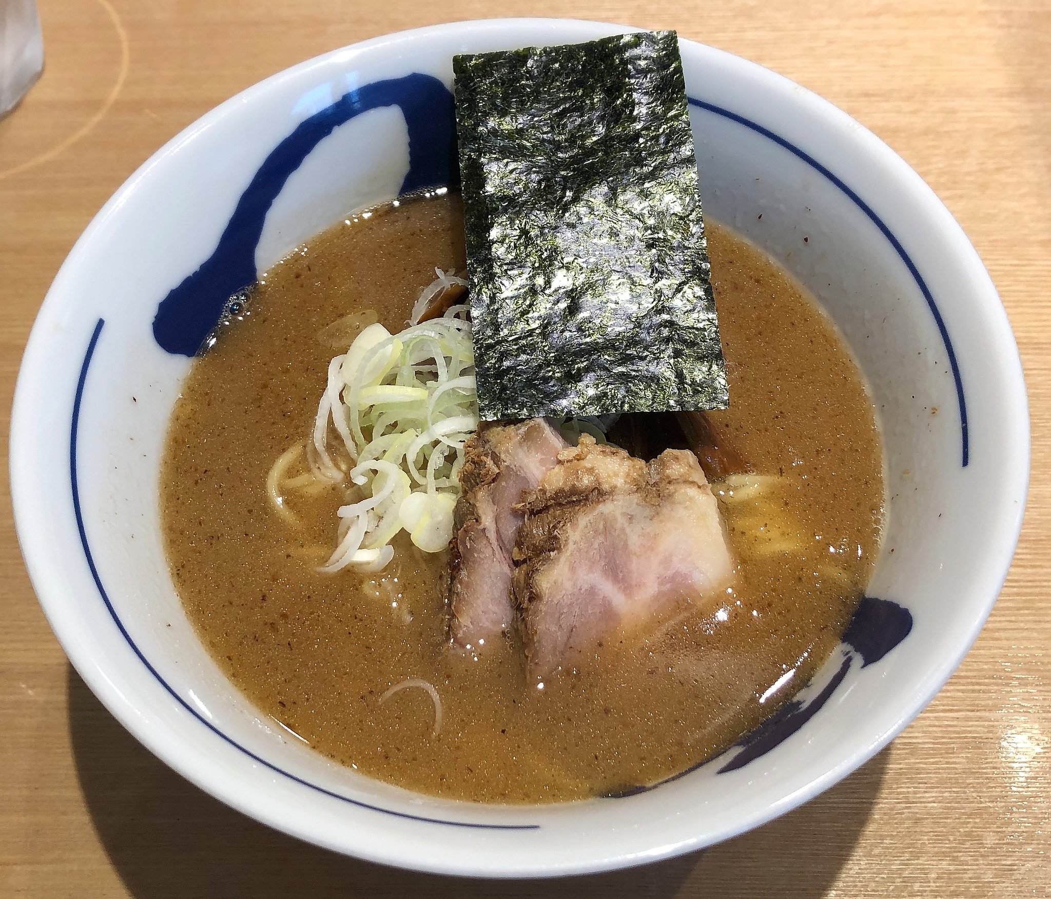 昼は外に食べに行くことにしていました。最初の目的のお店は発見できず最終的にたどり着いたのはつじ田でした。行列はできておらずお店の外にあるメニューを見て確認してから券売機で濃厚ラーメン:900円の食券を買って店員に渡して入店。