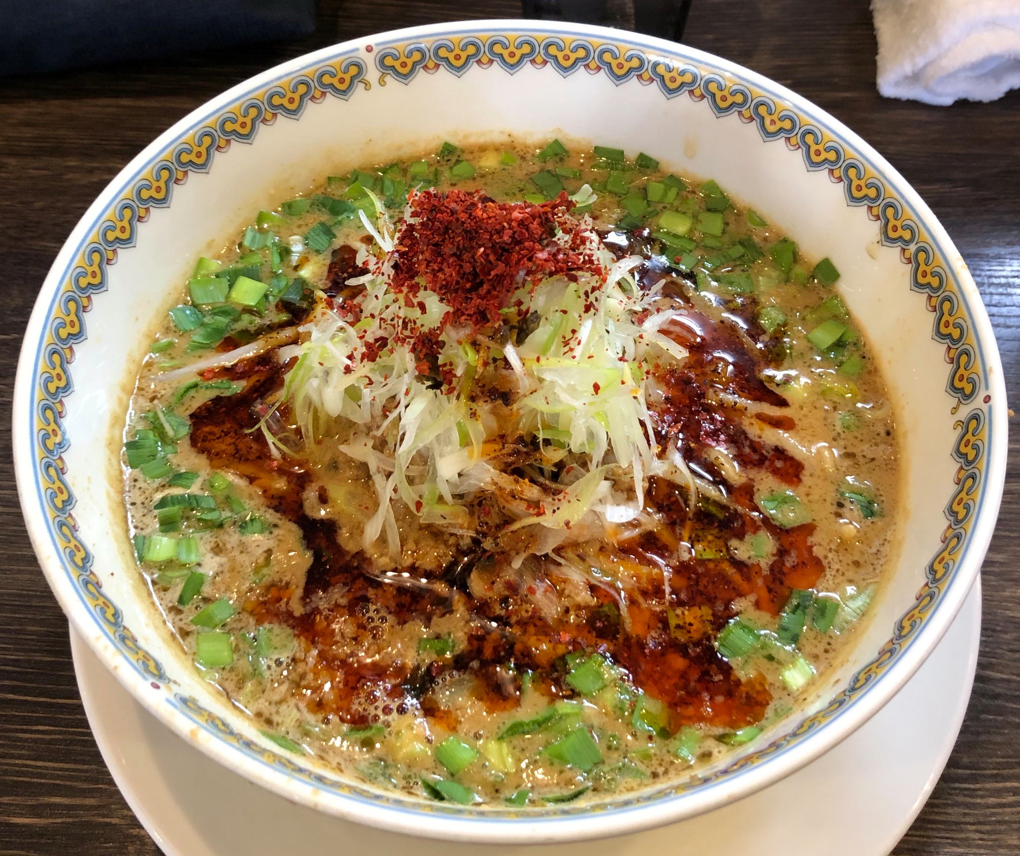 私は汁あり担担麺:980円で辛さと痺れ度は4-3にしました。