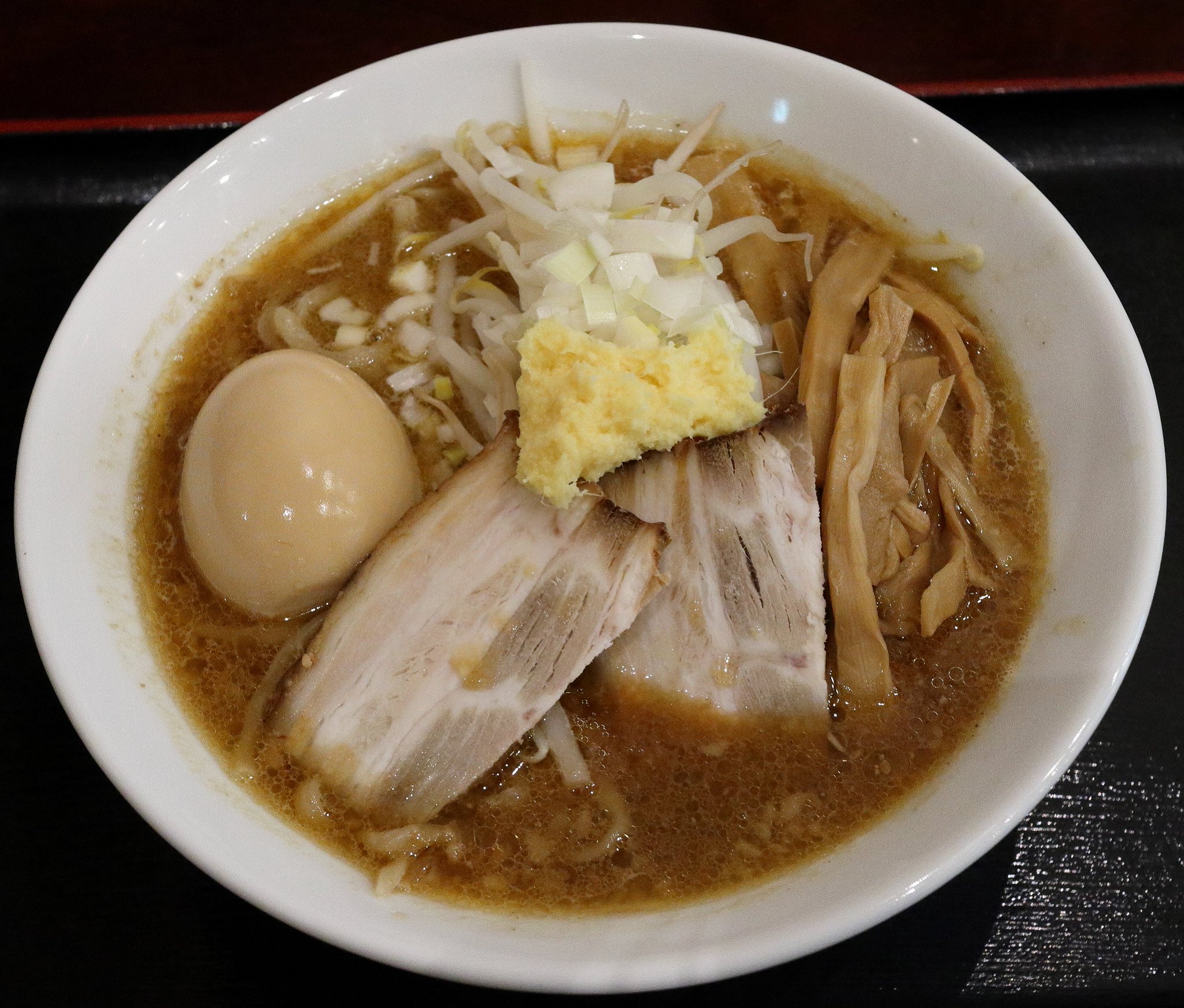 その後バルボレーションが登場。彼は横浜駅から歩いて来たそうです。仕方がないので去年と同じお店である麵屋甍に決めてお店に向かいました。ちょうどオープンしたところで先客1名。私は濃厚つけ麺:800円大盛(300g)、バルボレーションは野菜濃厚つけ麺:880円大盛(300g)の食券を買ってお店に入り、テーブル席に案内されました。