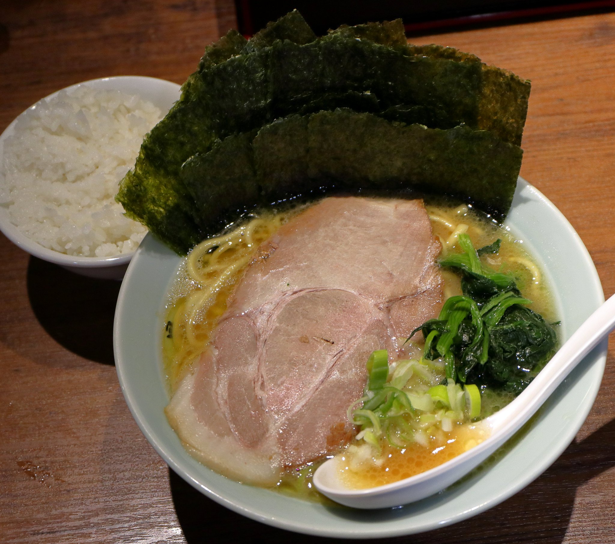 大きなチャーシューと増量した海苔が印象的でした。スープを飲んでみるとクセのない豚骨醤油味のスープで美味しかったです。麺は注文通りかためでした。大きなチャーシューを麺の下に入れるのは少し手間がかかりました。海苔はふやけてしまう恐れがあったのでちょっとだけ沈み込ませました。