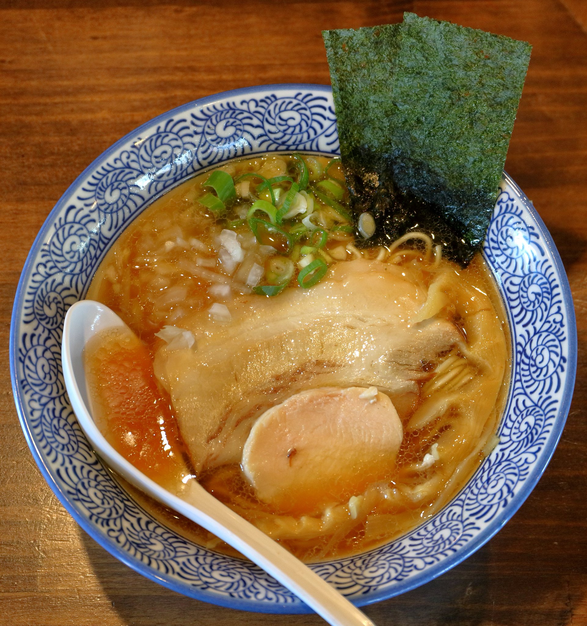 ラーメンはすぐに出てきました。煮干しラーメンというと独特な臭いを連想するのですが、ここの煮干しラーメンは濃厚という感じではなくて食べやすかったです。以前はあの独特な臭さが良かったのですが最近はこういったまろやかな煮干しラーメンもいいですね。説明を読むと煮干しの苦さを取り除いて作っているそうです。煮干しが苦手な人でも楽しめる煮干しラーメンだと思います。麺は中太麺でコシがありました。
