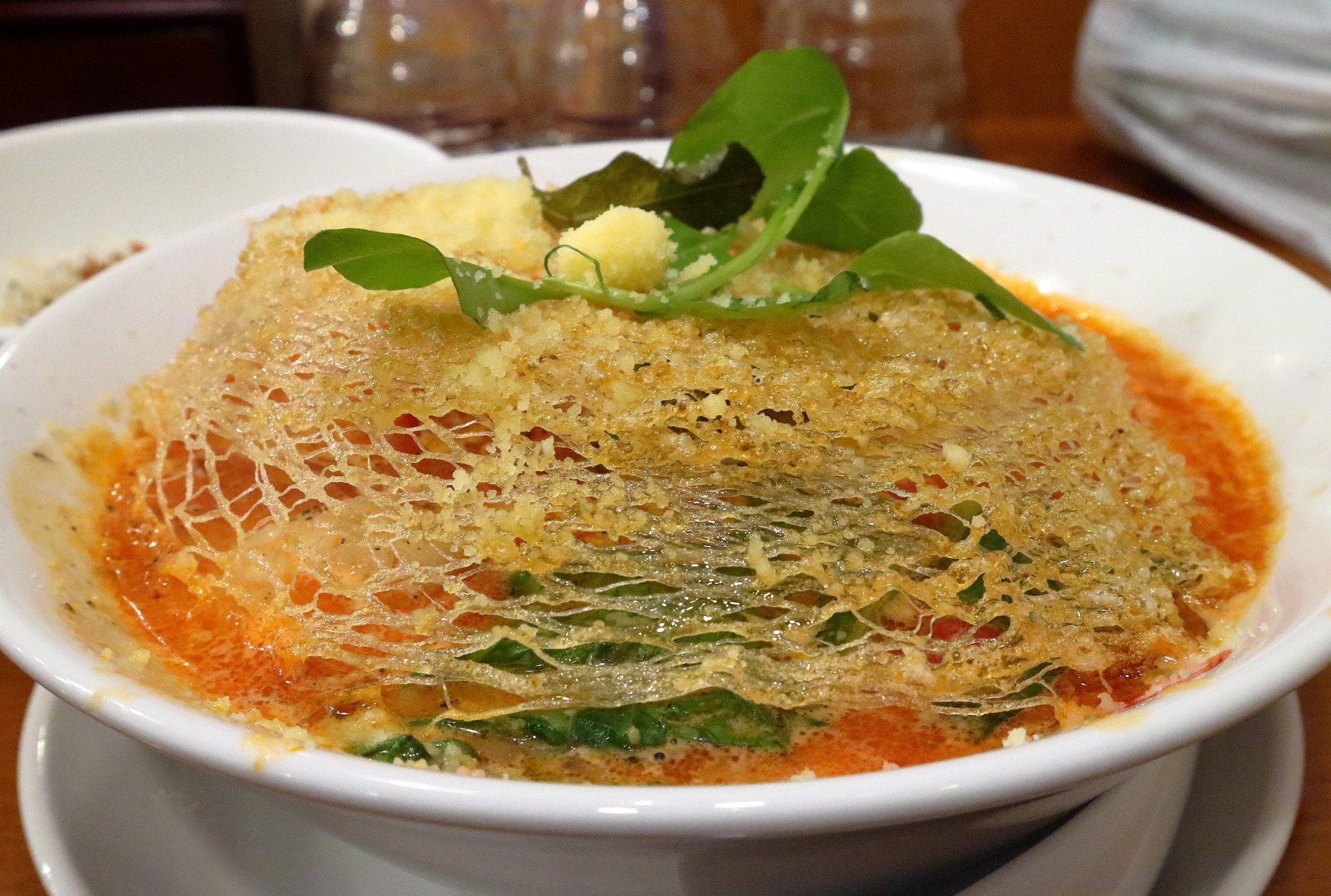 ラーメンが出てくるまでの間、メニューに書かれていた上記説明を読んでいました。体に良さそうなヘルシーなラーメンのようです。スープを飲んでみるとトマトスープです。チーズがとろけていい感じです。麺は確かに極細でした。麺が入っているのでラーメンなのかもしれませんが、これは別の料理のような感じでした。麺にトマトスープととろけたチーズが絡んで美味しかったです。他にも太陽の茄子ラーメン、太陽のエッグラーメン、太陽のボンゴレ麺などがあってまた来てみたいと思いました。アフターラーメンリゾット:らぁリゾというおすすめの品もありましたが、今日はもう一軒行く予定だったのでこれで終わりにしました。