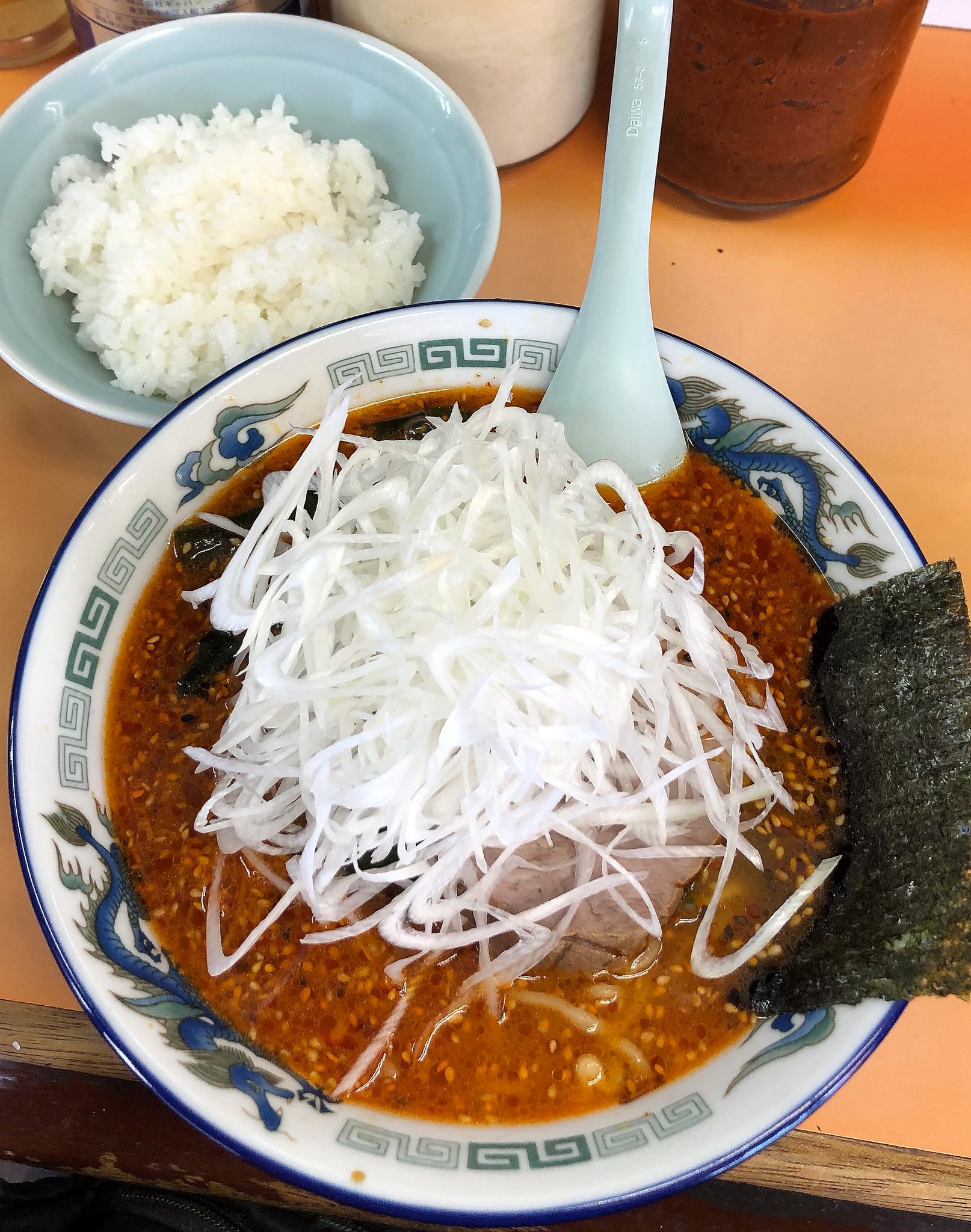 2005年04月23日 今日は三週間に一度の散髪の日です。朝一番の客でした。藤沢のラーメン事情について情報交換を行いましたが、散髪が終わったのが10時だったのでまだラーメンを食べるわけにもいかず、とりあえず今回は藤沢で食べるのは断念して戸塚のラーメン処「櫻」というところに行ってみることにしました。横浜ウォーカー別冊に載っていたラーメン屋です。さんざん探し回りましたが地元の人の話ではもうラーメン屋はやっていないとのことでした。しかたがないので自宅方面に向うことにしました。運転しながらどこに行こうか考えていましたが、とりあえず国道16号線沿いに行ってみることにしました。以前止めたことがある駐車場に車を止めて周辺を歩いてみましたが、今回は曙町三丁目交差点にある地獄ラーメン田中屋にすることにしました。店内の席はすべてカウンター席でちょうど1席だけ空いていたのでセルフサービスの水を汲んでその席に座りました。注文したのはもちろん地獄ラーメン(入門):800円です。地獄ラーメンには辛さのレベルがあるらしく、入門、初級、中級、上級、極上級とあるみたいですが、あまり辛くすると味が分からなくなるので入門にしてみました。結果的には入門くらいでちょうど少しピリ辛で良かったです。スープはトンコツスープで、ゴマとワカメと大量のネギが印象的でした。麺は太めでなかなか良く、チャーシューもおいしかったですが、玉子が無いのが残念でした。全体的に良かったのですが食べ終わってみるとあまり印象に残らないようなラーメンでした。 管理人評価:★★★☆☆