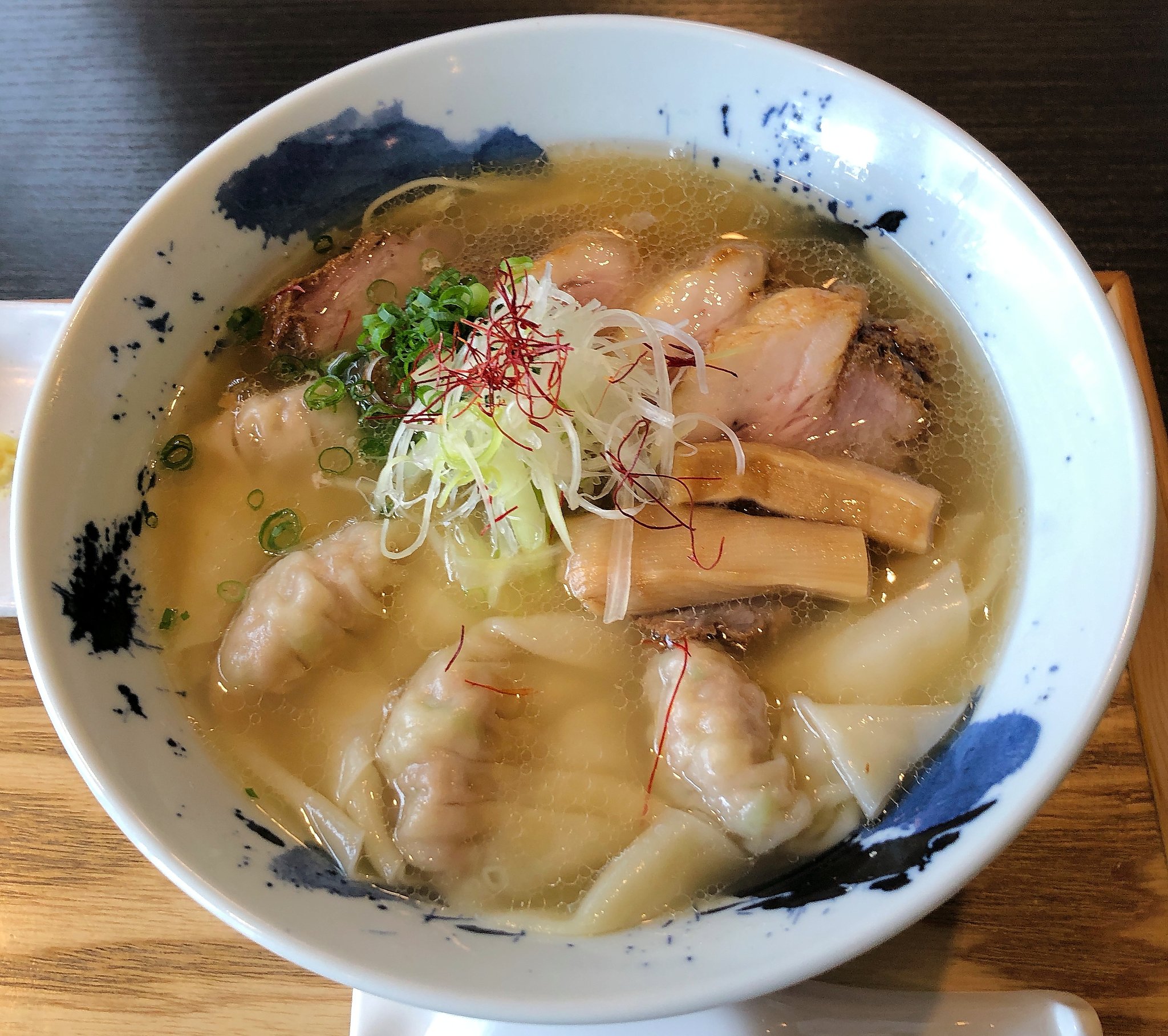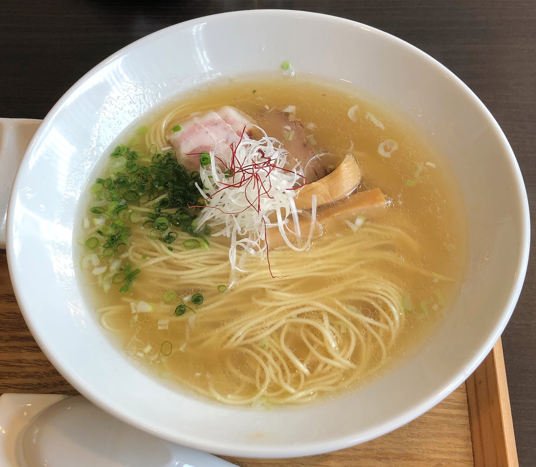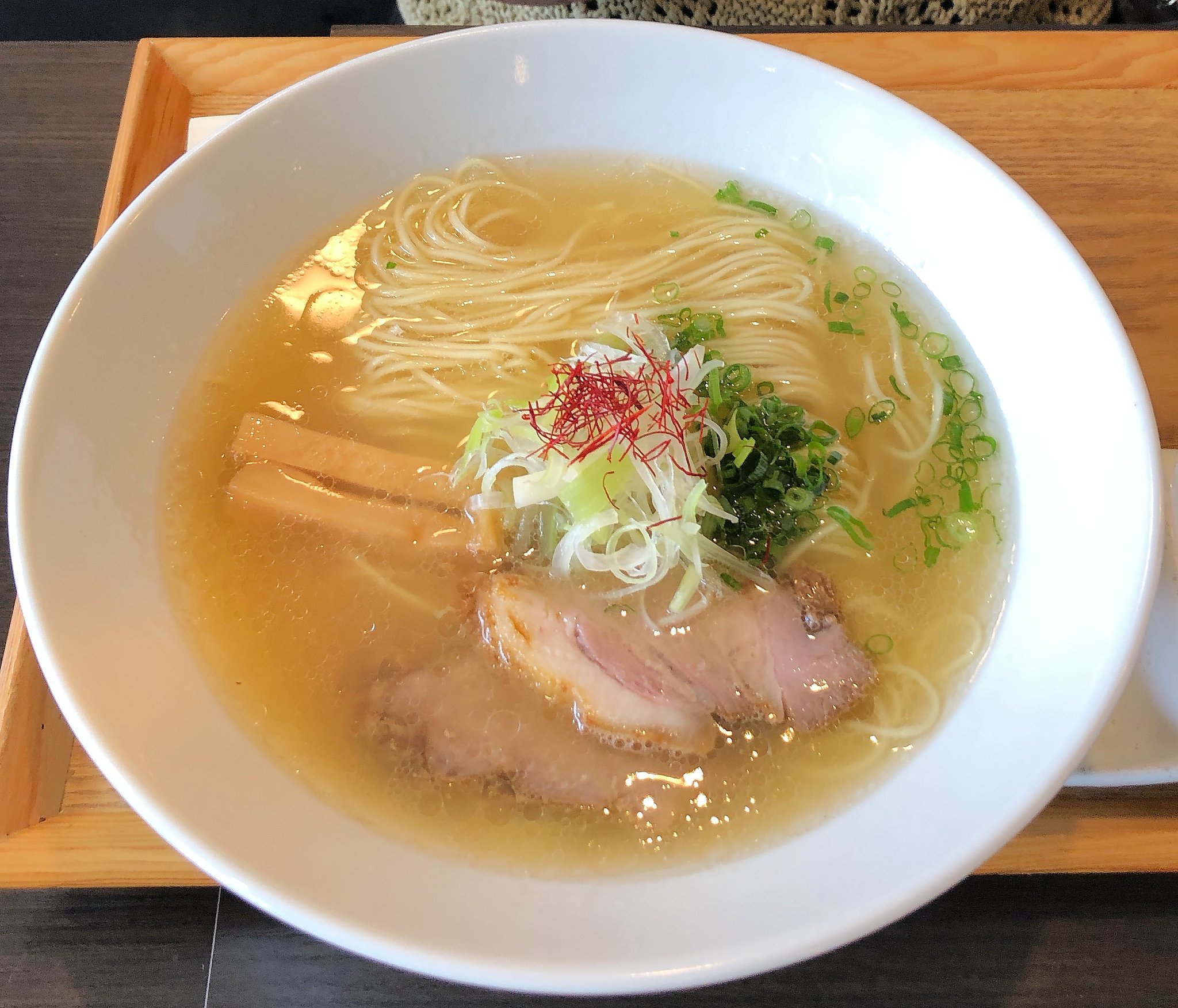 しばらくしてラーメンが出てきました。豚骨清湯とは透明な豚骨スープのことだそうです。ラーメンウォーカーによると、「豚骨だけで取る澄んだスープが自慢。豚骨のまろやかな旨味のスープを味わってほしいと、塩をベースに醤油ダレはほんのりと香り付けする程度」と紹介されていました。確かにその通りです。
