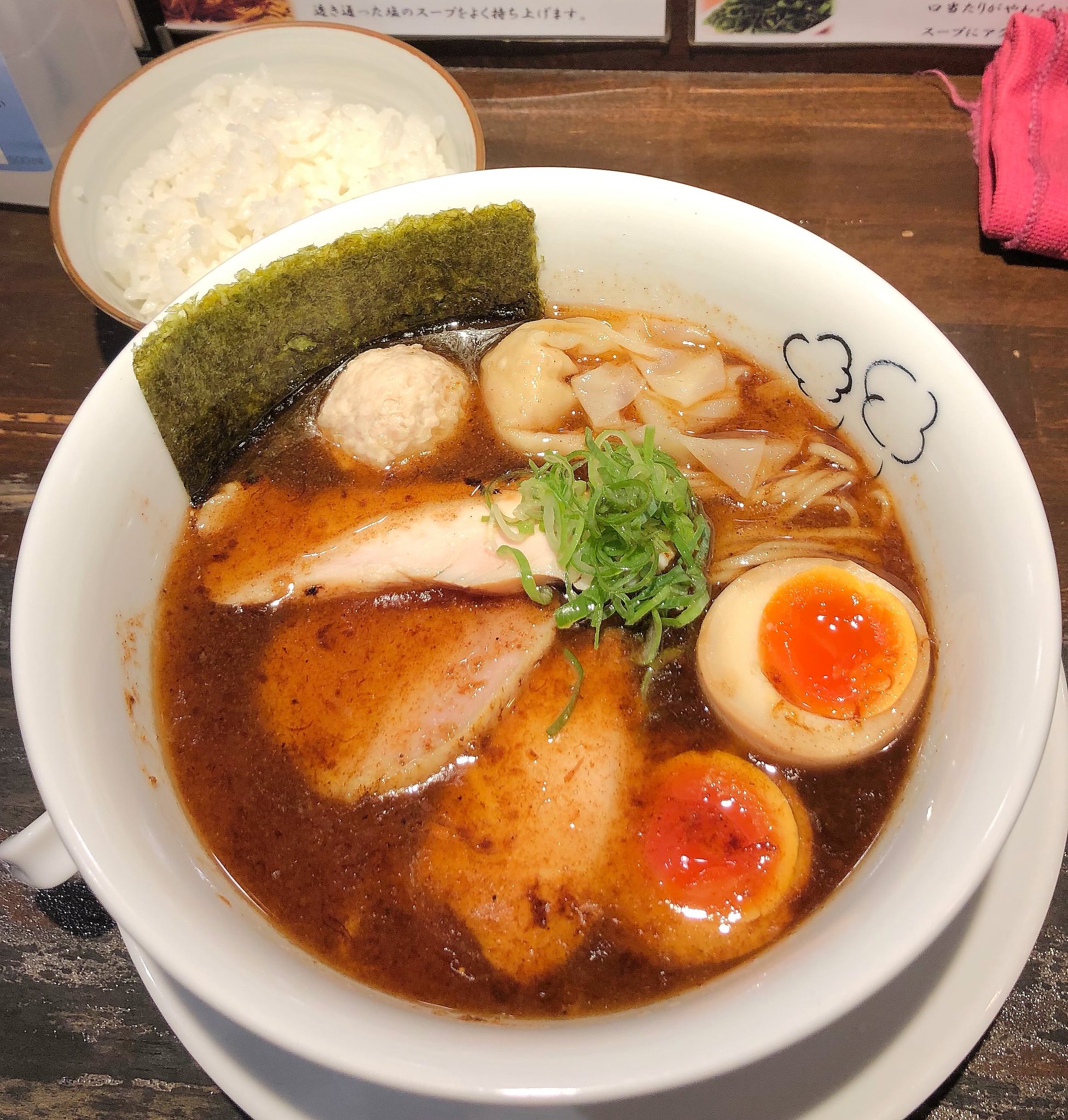 2015年11月29日昼その1 今日は母と鶏喰に行く日でした。先週から決めていたのです。鶏喰はミシュランガイドでも紹介されているお店でいつも行列ができています。11時開店なので10時半に出て行けば十分であろうと思って家を出たのですがお店の前には既に行列ができていました。近所のコインパーキングに車を止めてお店に行ってみると6番目くらいでした。これならギリギリ1巡目でお店に入れそうでした。その後お茶のサービスがありました。そして開店と共にお店に入ることができました。カウンター席です。私は特製塩:1000円(写真左)、母はコッテリラーメンが好きなので鶏と鰹の醤油ラーメン:780円(写真右)を注文しました。 ラーメンは2巡目の調理だったので少し待ちました。私の特製塩はまずスープを飲むとコクのある塩味のスープで舌が反応して涎が出てきました。私はあまり噛まずに飲み込んでしまう人なのですが今日はじっくり意識してよく噛むようにして味わいました。煮玉子は美味しいし、チャーシューも色々な種類があってどれも感動しました。 母も満足したようで満点の評価でした。 管理人の母評価:★★★★★ 管理人評価:★★★★★ |