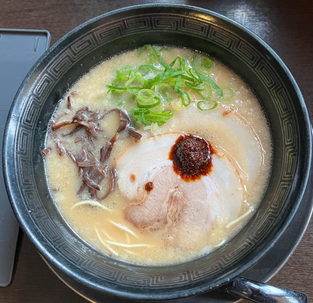 選んだのはとんこつラーメン:880円で麺のかたさはバリカタです。ラーメンはすぐにやってきました。